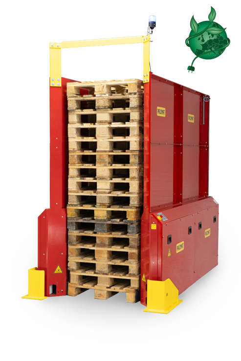 Du skal vælge PALOMAT® Double Up, hvis du både skal stable og nedstable 1+1 palle ad gangen i forlængelse af hinanden, og kun ønsker el som drivkraft.